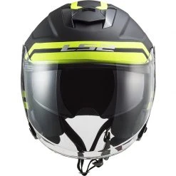 Moto Jet Helm LS2 OF521 Doppel Visier Unendlichkeit Jenseits Schwarz Gelb Hy Sicht
